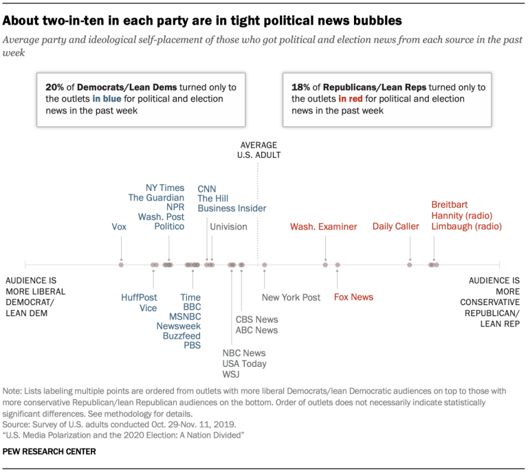 Seeing an opportunity to provide audiences, particularly conservative audiences, with less available news and opinion, Fox News was created and quickly attracted a huge contingent of conservatives across the country. This led to the creation of its doppelganger MSNBC which appealed to liberal audiences. Then, the internet ushered in the further fracturing of the media landscape and ever more gradations of content to satisfy extremists and moderates of both sides (though notably, nothing to appeal to people who want objective journalism). Competition between news media companies has thus created a spectrum of information providers that reflect the biases, particularly confirmation bias, and whims of the entire electorate.